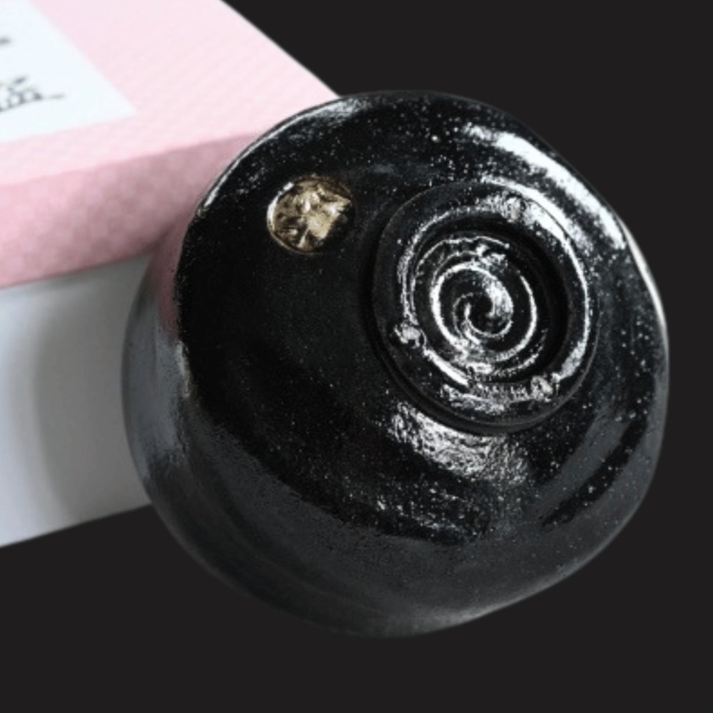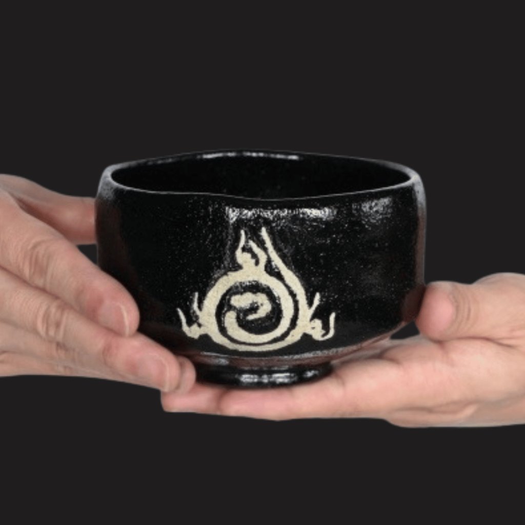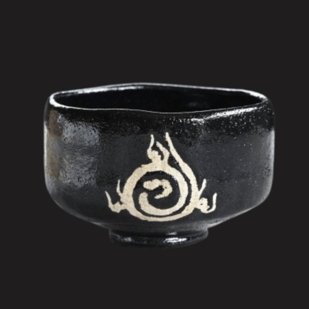 Ručně vyrobená čajová miska z dílny Shōraku v Kjótu nese hlubokou symboliku japonské i východoasijské tradice. Na temně černém povrchu raku keramiky se vine bílý had, znázorněný jako hōju (宝珠) – posvátný buddhistický klenot, který plní přání, zahání zlo a přináší požehnání.