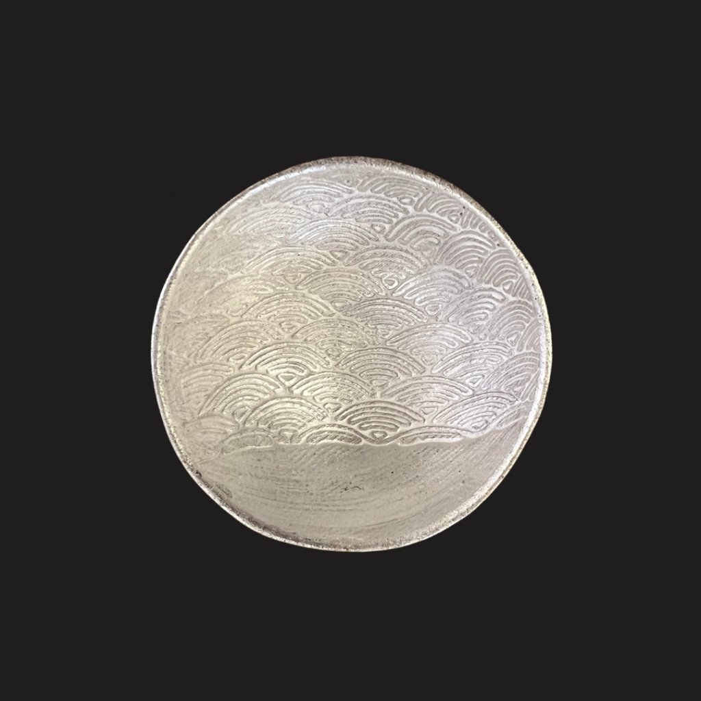 Ein Meisterwerk von Seiji Itoh, bekannt als Jinshu. Elegante Teetassen mit versilbertem Inneren, verziert mit dem traditionellen Motiv einer ewigen Welle – Symbol des Glücks.